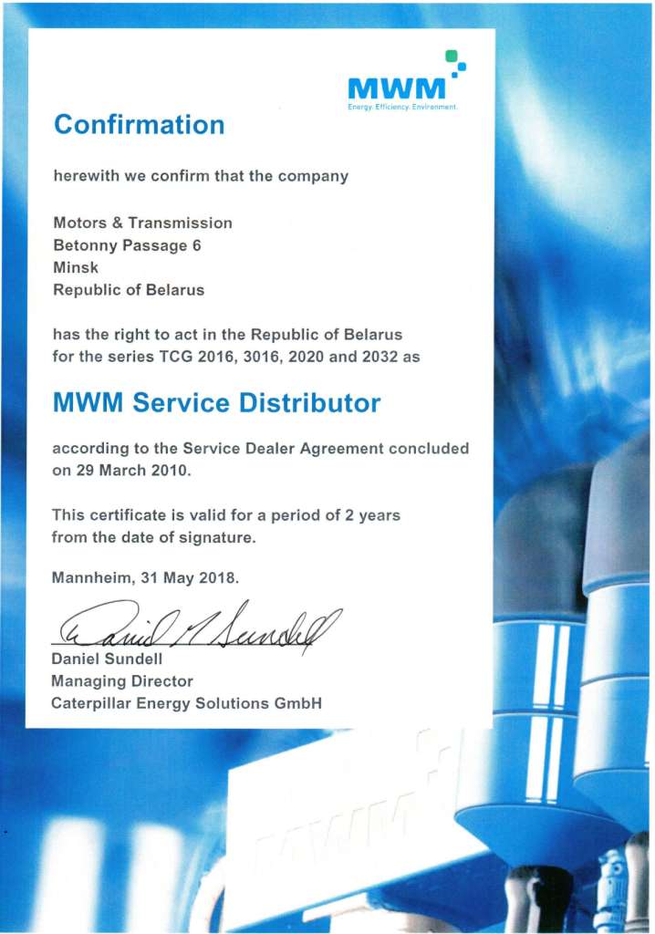 Выступая в качестве дилера компаний TEDOM a.s. и Caterpillar Energy Solutions GmbH (MWM GmbH), мы предлагаем только оригинальное оборудование, качество и высокая степень износа которого гарантированы заводами-производителями в течение 24 месяцев с момента ввода в эксплуатацию.