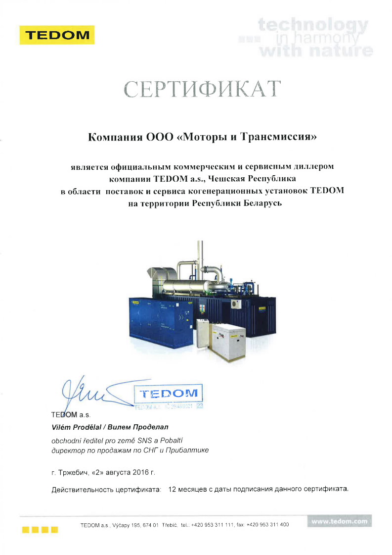 Выступая в качестве дилера компаний TEDOM a.s. и Caterpillar Energy Solutions GmbH (MWM GmbH), мы предлагаем только оригинальное оборудование, качество и высокая степень износа которого гарантированы заводами-производителями в течение 24 месяцев с момента ввода в эксплуатацию.